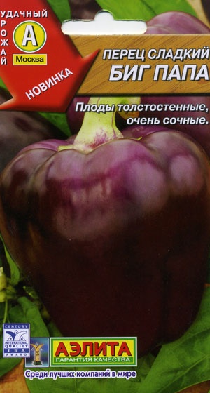 Красивый, оригинальный, неприхотливый и плодовитый сорт. Ранний, от всходов до технической спелости около 110 дней. Растения средней высоты, с обильным плодоношением. Плоды массой до 100 г; в технической спелости фиолетовые, в биологической –вишневые. Толщина стенки 6-7 мм. Фиолетовые перцы особенно полезны для здоровья, рекомендуем их для потребления в свежем виде. У вишневых плодов использование универсальное: сезонная кулинария, зимние заготовки. Нарядные кусты с темной листвой, фиолетовыми цветками и глянцевыми плодами способны украсить грядку и теплицу. Урожайность под пленкой 5-7 кг/м2 .