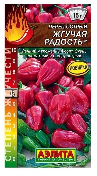 Сорт острого перца с привлекательным внешним видом и высокой продуктивностью. Раннего срока созревания – к уборке первых плодов приступают через 100-110 дней. Рекомендуется выращивать в защищенном и открытом грунте. Растения раскидистые, в теп лице высотой до 110 см. Плоды глянцевые, яркого насыщенного цвета и средней остроты. По упрощенной классификации жгучести относится к 6 группе (5000-15000 единиц по шкале Сковилла). Сорт используется для домашней кулинарии и консервирования. Сушеные перчики создают вкусовую основу для различных соусов и закусок. Урожайность в теплице 2-2,5 кг/м2 .