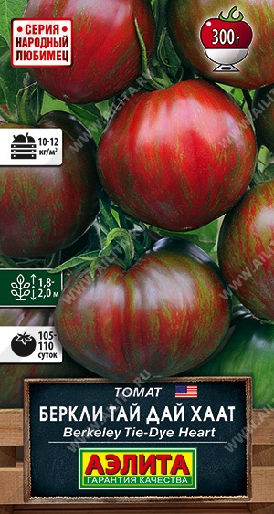 Достойный и популярный у садоводов томат из семейства Berkeley Tie-Dye. Создан известным американским селекционером Брэдом Гейтсом. Томат раннего срока созревания – от всходов до первого сбора плодов 105-110 суток. Сорт рекомендуется выращивать в теплицах и открытом грунте. Растение индетерминантное, в теплице высотой 1,8-2,0 м. Плоды* с очень яркой и неповторимой окраской, массой 250-300 г, плотные и мясистые, не растрескиваются. Насыщенный томатный вкус с фруктовым оттенком заслужил только восторженные отзывы. Сорт прекрасно подходит для приготовления салатов, консервирования, вяления и переработки на томатопродукты. Урожайность в теплице – 10-12 кг/м2.