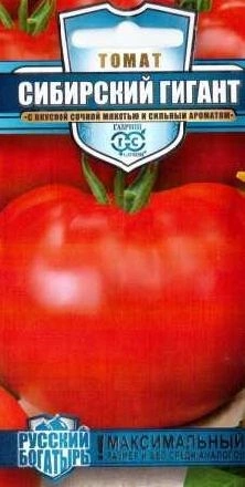 Крупноплодный среднеспелый (115-120 дней от всходов до плодоношения) биф-томат для выращивания в пленочных и остекленных теплицах. Растение индетерминантное, высотой более 2 м. В кисти образуется 2-3 плода. Плоды мясистые, плоскоокруглые, необыкновенно крупные — 400-800 г (отдельные до 1200 г!), ярко-красные. Мякоть нежная, сочная, с приятным сладким вкусом и сильным томатным ароматом. Один из лучших сортов для приготовления летних салатов и консервирования кусочками в собственном соку. Урожайность с одного растения 4-7 кг. Выращивают рассадным способом. Пикировку производят в фазе первого настоящего листа. После высадки в теплицу растения подвязывают к опоре. Формируют в один стебель, удаляя все «пасынки» и нижние листья, а также прищипывают точку роста в конце вегетации. Схема посадки: 40x60 см. Плоды собирают по мере созревания.