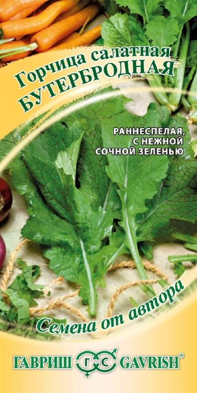 Раннеспелое (от всходов до уборки на зелень 17-20 дней) однолетнее растение высотой до 28 см, диаметром 20 см. Лист среднего размера, желто-зеленый, цельный, с мелкозубчатым краем, с приятным горчичным вкусом. Сорт рекомендуется для выращивания свежей зелени в открытом и защищенном грунте. Горчица листовая хорошо растет на обычных почвах, требовательна к влаге, при ее недостатке листья становятся грубыми, их вкус ухудшается. Высевают рядовым способом на расстоянии 10-15 см (глубина заделки семян до 1 см). При появлении первых листочков проводят прореживание, оставляя между растениями 4-5 см. К уборке приступают, когда растения достигнут 10-15 см высоты. Горчицу срезают ножницами или выдергивают с корнями. Масса одного растения 30-50 г. Урожайность зелени до 4 кг/кв.м.