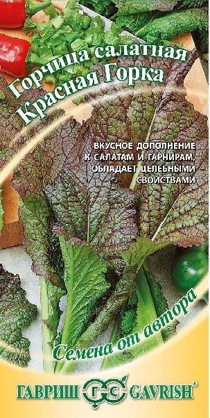 Однолетнее скороспелое холодостойкое растение. Период с момента появления всходов до готовности зелени 25-30 дней. Высевают рядовым способом на расстоянии 10—15 см (глубина заделки семян до 1 см), в фазе 2-3-х листьев прореживают, оставляя между растениями 6-8 см. Розетка листьев крупная, прямостоячая, слегка раскидистая. Молодые листья имеют приятный горчичный вкус и темно-красный цвет. Листья крупные, удлиненноовальные, без воскового налета, содержат каротин, витамины, соли кальция и железа. Хорошо растет на обычных почвах, требовательна к влаге, при ее недостатке листья становятся грубыми и вкус их ухудшается. К уборке приступают, когда растения достигнут высоты 5-7 см. Горчицу срезают ножницами или выдергивают с корнями. Сорт предназначен для выращивания свежей зелени в открытом и защищенном грунте.