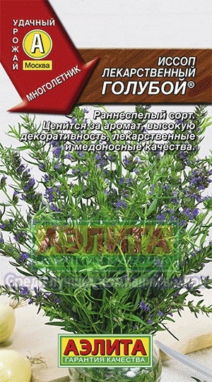 Многолетний полукустарник пряно-ароматической группы. Ценится за приятный интенсивный аромат, высокую декоративность, лекарственные, медоносные и пищевые качества. Сорт раннеспелый, с момента весеннего отрастания до начала цветения 80-85 дней. Формирует плотный куст высотой 50 см. Урожайность зелени 3-3,5 кг/м2. Вредителями и болезнями практически не поражается, зимует без укрытия. Листья и молодые побеги используют в свежем и сушеном виде в качестве приправы к разнообразным блюдам. Эфирное масло иссопа обладает антимикробным и противовирусным действием.