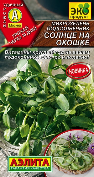 Яркая и аппетитная микрозелень подсолнечника – изысканный и ценный подарок природы. В молодых ростках содержится огромное количество полезных микроэлементов, витаминов и аминокислот. Регулярное употребление в пищу способствует общему оздоровлению организма и похудению. Микрозелень обладает ярко-выраженным салатным вкусом с едва уловимым масляным послевкусием. Свежесрезанные ростки используют в салатах, для приготовления бутербродов, добавляют в овощной фреш.