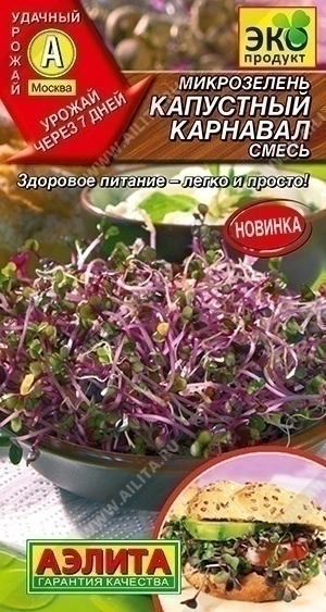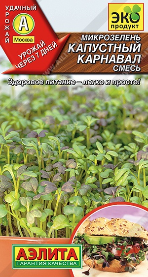 Самые полезные для здоровья культуры собраны в одной смеси. Достаточно лишь посеять семена и уже через неделю вы обеспечите семью полным комплексом натуральных витаминов. Проростки красивые, вкусные, сочные, с легкой пикантностью и неповторимым ароматом свежей зелени. Состав: горчица сарептская (салатная) Чудеса в решете, капуста китайская Четыре сезона, капуста японская Русалочка, кресс-салат Ванька кучерявый.