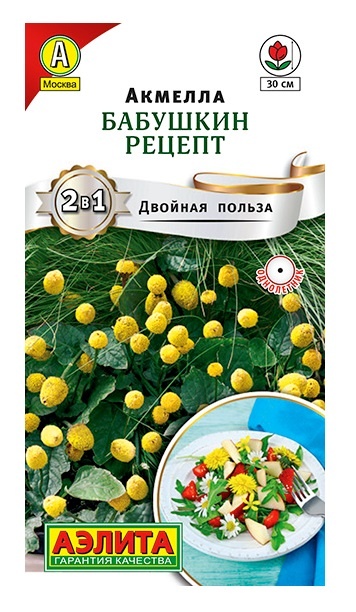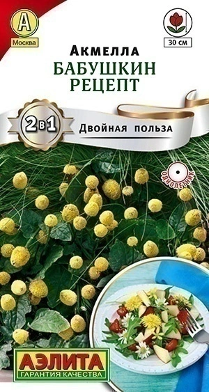 Акмелла (спилантес) – многолетняя, декоративная, лекарственная, пряная культура высотой не более 30 см с красивыми соцветиями. Выращивается в умеренной зоне в качестве однолетнего растения. Очень быстро растет и зацветает. Сорт используется для оформления цветников и бордюров, лекарственных садиков и вазонов. Листья акмеллы обладают пикантно-острым вкусом и обезболивающими свойствами (подагра, зубные боли). Их добавляют свежими в салаты, тушат с ними мясо, овощи. Измельченные, сушеные листья включают в состав приправ и соусов.