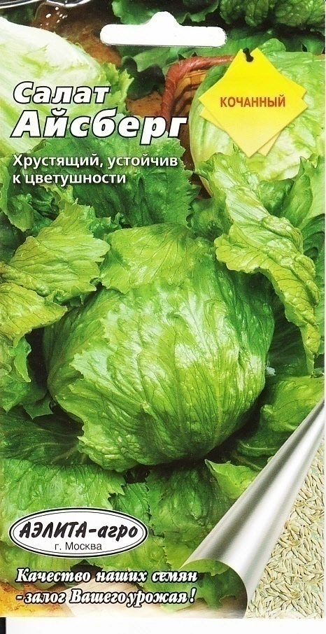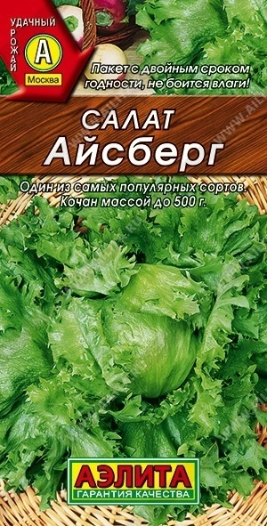 Один из самых вкусных кочанных салатов с хрустящим типом листа. Известен также как «ледяной» салат. За 50-60 дней от всходов формирует компактную розетку с тугим кочаном диаметром 10-15 см и массой 200-500 г. Листья сочные, нежные. Вкус нейтрально-сладковатый, хорошо сочетающийся со многими продуктами. Калорийность – всего 14 ккал на 100 г. Срезанный кочан не боится холода и сохраняет свежесть в холодильнике около недели.