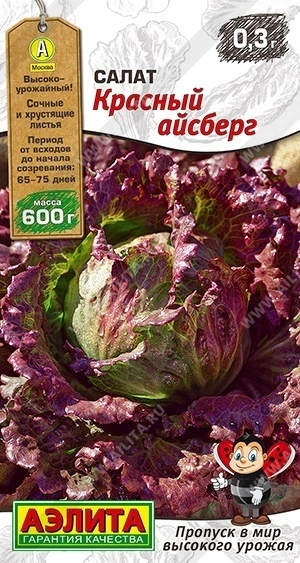 Потрясающий сорт айсберг салата, который очень популярен благодаря красивому виду и сочному, хрустящему вкусу. Позднего срока созревания, формирует урожай за 65-75 дней от посева. Кочаны массой до 600 г, внутри светло-зеленые, наружные листья тёмно-красные. Сорт рекомендуется для свежего потребления в составе салатов, холодных закусок и бутербродов. Урожайность – 6-6,5 кг/м2.