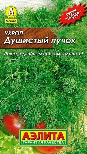 Среднеспелый сорт для получения ароматной зелени и специй для солений. Листья среднего размера, темно-зеленые, среднерассеченные, со слабым восковым налетом, очень ароматные. Масса одного растения при уборке на зелень 50-60 г. Сорт отличается замедленным заложением соцветий. Для потребления в свежем виде, сушки, соления, замораживания. Семена высокоароматичные, хороши в качестве специи для засолки огурцов, капусты. Сорт пригоден для подзимнего посева в ноябре.