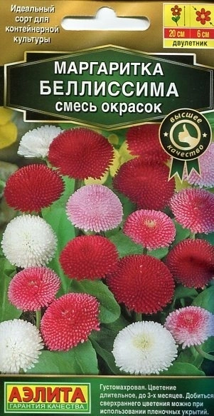 Двулетнее, ковровое, компактное растение, с множеством цветов, высотой 15-20 см. Маргаритка Беллиссима долго цветущее растение, в прохладное лето цветет до 3-х месяцев. Для того чтобы растение начало сверх рано цвести, необходимо накрывать его пленочным укрытием. Подходит для выращивания в контейнерной культуре, в бордюрах.