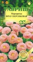 Маргаритки группы сортов «Фрау» обладательницы крупных, плотных как помпоны махровых соцветий, диаметром 4-5 см. Кусты прочные пышные, одинакового размера, высотой 15 см, в пору цветения, обильно усыпаны соцветиями редкого лососево-розового оттенка. Серия успешно используется в профессиональном и любительском садоводстве для выращивания на клумбах, рабатках, в бордюрах, а также в горшках и балконных ящиках. Маргаритка неприхотливое многолетнее растение, культивируемое как двулетнее. Предпочитает солнечные места без застоя воды. Хорошо переносит легкое затенение. Недостаток влаги в период цветения может привести к измельчению и полному исчезновению соцветий. Семена высевают в открытый грунт в конце июня — начале июля, всходы появляются через 7-10 дней. Цветение начинается в апреле на второй год после посева. При хорошем уходе растение цветет до осени, с перерывом в жаркий период сезона.