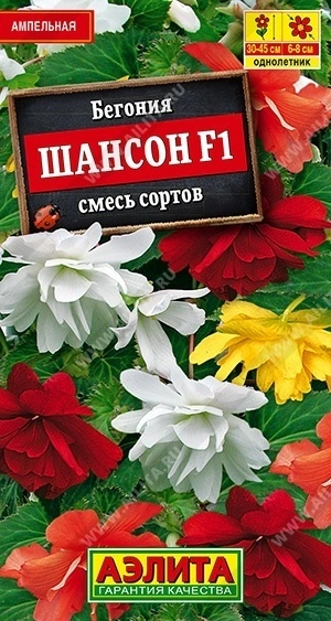 Обильноцветущая смесь ампельной бегонии. Пышно украшена разноцветными, махровыми и полумахровыми, крупными цветками Ø 6-8 см. Формирует хорошо разветвленный куст с 5-8 поникающими, крепкими побегами длиной 30-45 см. Эффектно смотрится в кашпо, крупных садовых вазонах и подвесных корзинах. К концу сезона образуются клубни, которые можно сохранить до посадки на следующее лето.