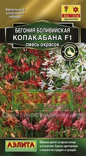 Эксклюзивный гибрид с ампельным габитусом. Необычайно пластичный к интенсивности освещения – в отличие от других клубневых бегоний, отлично цветет на ярком солнце. Листья при этом выглядят немного бледнее, чем в затенении, но их практически не видно за лавиной разноцветных цветков Ø 6-7 см. До высоты 35 см растения имеют прямостоячую форму, далее начинают интенсивно куститься и образуют пышные каскады в вазонах или приобретают стелющуюся форму на клумбах. Гибрид хорошо адаптирован к засухе и не страдает от дождей. Зацветает через 14-15 недель от всходов.