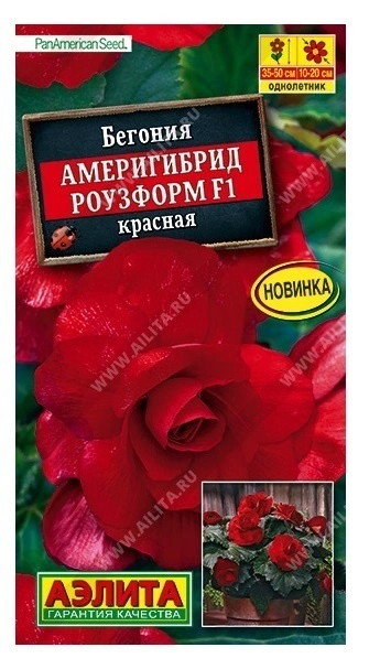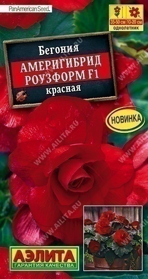 Феноменально крупный цветок! При хорошем уходе достигает 20 см в диаметре! Шедевр селекции. Выведена в американской фирме PanAmerican Seed, которая уже в пятом поколении специализируется на клубневых бегониях. Таким потенциалом крупноцветковости не может похвастаться ни одна из известных серий. Изысканные цветки при полном роспуске напоминают роскошные розы и очень гармонично смотрятся на фоне изумрудных листьев. Растение с крепкими побегами, высотой 35-50 см. Элегантная бегония Америгибрид Роузформ F1 любит расти в тени и прекрасно смотрится в бордюрах, цветниках, оконных и садовых кашпо.