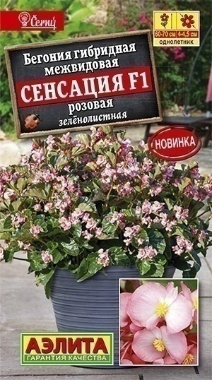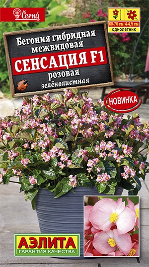 Неприхотливый теневыносливый межвидовой гибрид с яркими ажурными листьями. Мощные пышные кусты, высотой 60-70 см усыпаны некрупными розовыми цветками с весны и до первых заморозков. Растения не полегают во время сильных дождей и ветра, не выгорают на открытом солнце. От посева до цветения посадок проходит 12-14 недель. Бегония межвидовая прекрасно смотрится в крупных вазонах и в цветниках. Благодаря своей неприхотливости может с успехом выращиваться при минимальном уходе на приусадебных участках и на балконах (в крупных вазонах).