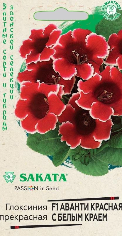 Роскошное и очень модное среди цветоводов комнатное растение из семейства Геснериевые. Самая рано зацветающая серия среди немахровых глоксиний. Цветки колокольчатой формы, красные с белым краем, с приятной бархатистой поверхностью венчают длинные цветоносы. Широкоовальные листья на коротких черешках украшают основание цветоноса. На взрослом растении образуется 10-15 крупных цветков, создавая впечатление нарядного букета. Глоксиния предпочитает светлые, солнечные места без воздействия прямых солнечных лучей. Идеальная температура для роста — 20°С - 25°С днем и 18°С – 22°С ночью. Во время цветения необходим обильный полив, еженедельные подкормки, влажный воздух (опрыскивание из пульверизатора). В октябре-ноябре, после цветения, полив и подкормку прекращают. Когда листья глоксинии засохнут, клубни вынимают из почвы и помещают на хранение в неглубокие ящички с чуть влажным песком или перлитом, которые устанавливают в помещении с температурой 10-12°С. После периода покоя (примерно 90 дней) клубни дадут новые ростк