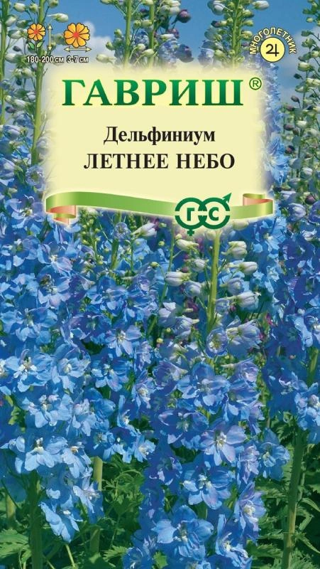 Многолетнее растение семейства Лютиковые, высотой до 2 м с плотными кистевидными соцветиями голубых с белым глазком цветков. Цветет в июне-июле, вторичное цветение - в августе-сентябре, отцветшие соцветия обрезают для полноценного второго цветения. Хорошо растет на освещенных участках с легким затенением в полуденные часы. Предпочитает плодородные суглинистые и супесчаные, умеренно влажные почвы. Семена высевают осенью в открытый грунт или в марте на рассаду, в мае растения высаживают на постоянное место с расстоянием 35-40 см. Используются в групповых и одиночных посадках, для получения срезки. В срезанном виде стоят в воде до 10-12 дней. Все части дельфиниума ядовиты.