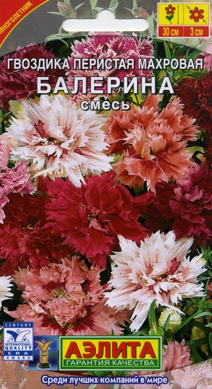 Многолетняя гвоздика с великолепным ароматом. Образует плотные подушки высотой 30-40 см. Цветки Ø 3-5 см, махровые, с бахромчатым краем лепестка. Цветение пышное, обильное. Рекомендуется для выращивания на альпийской горке, в миксбордере, в горшках и балконных контейнерах. Подходит для срезки.