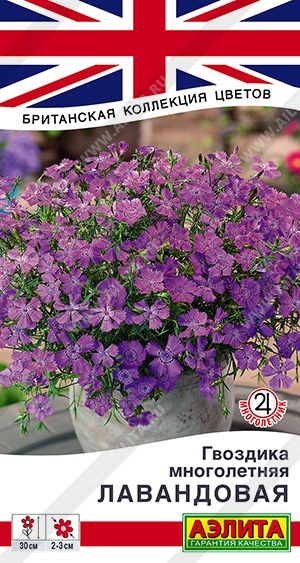 Многолетний сорт гвоздики с цветками классической формы великолепного лавандового оттенка. Отличается длительным периодом цветения, хорошей зимостойкостью и неприхотливостью в уходе. Растения шаровидной формы, компактные, с хорошим боковым ветвлением, вы сотой не более 30 см. Побеги увенчаны изящными цветками Ø 2-3 см. Это удачный выбор для оформления бордюров, низкорослых клумб, альпийских горок, создания ярких одиночных куртин среди газона. Сорт подходит для выращивания в ограниченном объеме грунта.