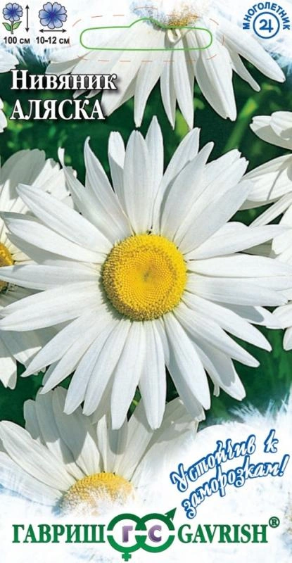 Многолетнее растение с множеством ветвистых стеблей высотой до 100 см. Листья стеблевые, нижние черешковые лопатчатые, верхние продолговатые, сидячие, по краям городчатые. Соцветия - корзинки белоснежные с желтым центром, крупные, диаметром 10-12 см. Предпочитает солнечные места и удобренную почву. Размножают семенами, делением корневищ и черенками. Семена высевают весной для выращивания рассады или осенью — в гряды открытого грунта. При весеннем посеве и температуре почвы 15 о С всходы появляются через 14-20 дней. Сеянцы зацветают на второй год. Кусты делят на 3-4-й год выращивания весной и рассаживают на расстоянии 30 см. Нивяник хорошо смотрится в групповых посадках на газоне, на фоне декоративных кустарников; для срезки.