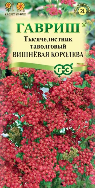 Многолетнее корневищное растение из семейства Астровых высотой 50-70 см. Стебли прямые, многочисленные с ажурными листьями, придающими растению дополнительную декоративность. Цветет в июле-августе. Соцветия плотные, диаметром до 15 см, вишнево-красной окраски. Холодостоек, засухоустойчив, хорошо растет на открытых или слегка затененных участках, к почве нетребователен. Посев семян проводят весной или под зиму. Используется для групповых посадок, высоких рабаток и получения срезки. Тысячелистник можно использовать в зимних букетах, при засушивании он хорошо сохраняет окраску соцветий.