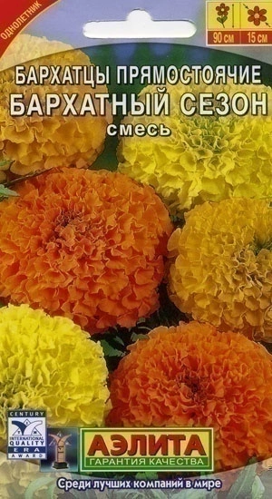 Высокорослые бархатцы с очень крупными (диаметром 10-11 см), махровыми соцветиями. Кусты высотой 80-90 см, ветвистые, с большим количеством крепких цветоносов. Раннее, обильное и продолжительное цветение обеспечит саду роскошный вид. Смесь великолепно смотрится в рабатках и на клумбах, подходит для создания массивов. Используется на срезку, сохраняя в воде свежесть и красоту около 2 недель.