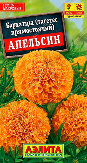 Высокорослые бархатцы с очень крупными (диаметром 10-12 см), густомахровыми соцветиями. Кусты высотой до 90 см, хорошо ветвятся и обильно цветут на протяжении всего сезона. Растения засухоустойчивые, не требовательные к почвам. Используются для одиночных и групповых посадок на клумбах и в цветниках. Сорт дает отличную срезку.
