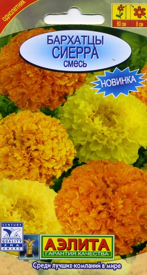Высокорослые, обильноцветущие бархатцы. Соцветия крупные, густомахровые, Ø 7-9 см. Кусты крепкие, хорошо разветвленные, высотой 70-90 см. Цветение раннее и продолжительное. Растения прекрасно держат форму в течение всего сезона. Используются для сборных цветников, клумб и высоких бордюров. Подходят для срезки.