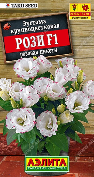 Потрясающе нарядная генетически низкорослая эустома японской селекции от компании Takii seed! Крупные, диаметром до 7 см махровые цветы фантастически смотрятся на невысоких, 20-25 см кустиках. Растения отлично ветвятся, не требуя прищипки. Цветение очень длительное, бутоны формируются и распускаются постепенно. В доме эустома может жить 2-3 года, в открытом грунте ее выращивают как однолетник. Первые месяцы растения развиваются крайне медленно. Они не любят травм корневой системы (предпочтительна перевалка, а не пикировка). Уход состоит в своевременных поливах, подкормках и, при горшечной культуре, перевалке в более просторную емкость. Лучше всего растения цветут в легком, рыхлом, воздухопроницаемом грунте с нейтральной реакцией рН.
