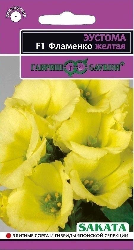 Роскошное и очень нежное однолетнее растение из семейства Горечавковые. Стебли высотой до 70 см, сильные, очень прочные, способные выдержать крупные, плотные цветки. Самая раноцветующая серия, зацветает на 2 недели раньше всех остальных срезочных лизиантусов. Крупные (до 7 см) желтые простые цветки, в пору цветения похожи на полуоткрытые бутоны розы, с атласными, спиралевидно расположенными лепестками. Предпочитает солнечные места, окультуренную почву, регулярные поливы и опрыскивания. Для получения цветущих растений в июле — августе посевы производят в конце февраля — начале марта. Семена мелкие, их не присыпают, оставляя на поверхности субстрата, увлажняют из распылителя и накрывают стеклом. Всходы появляются через 10-15 дней при температуре +20-21оС. Необходим свет. Сеянцы пикируют в стадии 2-3-х настоящих листьев в отдельные горшки. В грунт высаживают, когда минует угроза заморозков. Используют для украшения клумб, рабаток, бордюров и срезки.