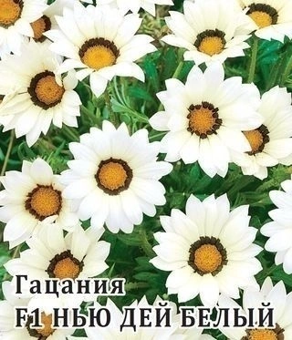 Изящное многолетнее растение, выращиваемое как однолетнее. Компактный кустик высотой 20-25 см, диаметром до 20 см. Листья линейные зеленые, серебристо-белые снизу. Эффектные крупные (7-10 см) ромашковидные соцветия с белыми лепестками, привлекают внимание темным «кольцом» вокруг яркой серединки. Гацания светолюбива, предпочитает умеренный полив и регулярные подкормки, особенно на бедных почвах. Выращивают рассадным способом. Всходы появляются на 10-14 день. Цветет очень обильно с июля до заморозков. Соцветия открыты только в солнечную погоду. Привлекательное растение для оформления рабаток и миксбордеров, великолепно смотрится на альпийской горке и как контейнерное растение. В срезанном виде сохраняет декоративность в течение 5 дней.