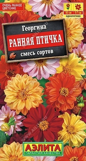 Быстрорастущая смесь низкорослых махровых георгин с очень ранним, обильным и длительным цветением. На кустах до 50 см высотой распускается множество соцветий Ø 5-7 см на крепких цветоносах. Растения прекрасно смотрятся в бордюрах, подходят для создания массивов. Замечательный сорт для выращивания в контейнерах и садовых вазах.