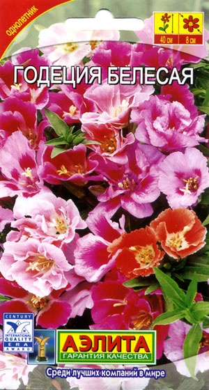 Бесподобное однолетнее обильноцветущее растение. Цветки очень крупные ( Ø 7-9 см), шелковистые, различных окрасок, собранные в плотные, короткие кисти. Растения сильно кустистые, компактные, высотой 30-40 см. Годеция – настоящее украшение сада, используется в миксбордерах, рабатках и на клумбах. Подходит для уличных вазонов и балконных ящиков. Срезанные цветы – прекрасный материал для составления букетов.