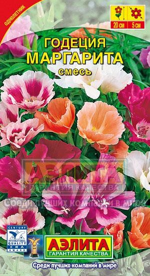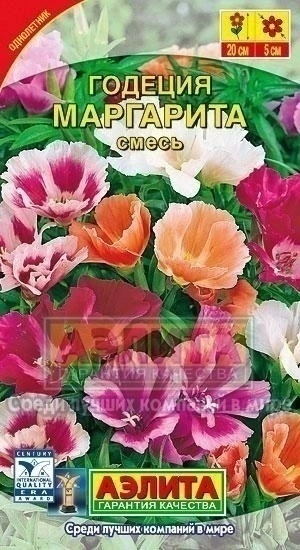 Компактная годеция высотой до 30 см. Кустики прямостоячие, ветвистые, быстрорастущие. Крупные цветки Ø 5-6 см с шелковистыми лепестками собраны в плотные облиственные кисти. Цветение раннее, обильное и очень продолжительное. Первые заморозки растениям не страшны, т. к. они выносливы и холодостойки. Разно цветная смесь широко используется для посадок на клумбах, в рабатках и бордюрах. Ввиду компактности куста растения идеально подходят для выращивания в уличных вазах, балконных ящиках, горшках.