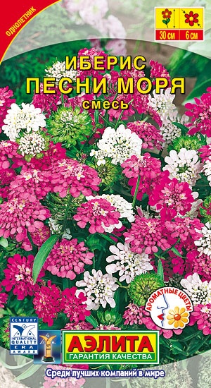 Яркая смесь сортов неприхотливого летника с великолепным ароматом. Кустики крепкие, хорошо разветвленные, высотой 25-30 см. Мелкие цветочки собраны в плотные щитковидные соцветия диаметром 5-6 см. Цветение обильное. Иберис пригоден для выращивания в контейнерах. Используется для оформления мест отдыха и прогулок, балконов, клумб, альпийских горок.