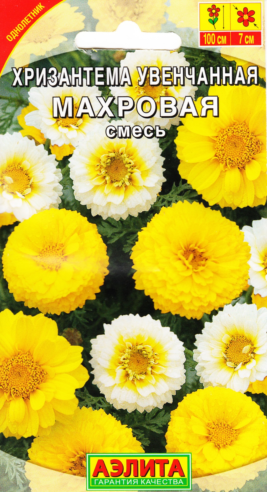 Очаровательная, неприхотливая, быстрорастущая смесь. Цветет долго и обильно. Кусты густоветвистые, прямостоячие, высотой около 1 м, легко переносят похолодание и засуху. Многочисленные соцветия-корзинки диаметром 6-7 см распускаются с июля до осени. Вредителями и болезнями не повреждается. Украсит смешанные цветники, клумбы, огороды. Используется в пищу и относится к группе овощных хризантем. Отлично подходит для срезки, долго сохраняя декоративность в воде.