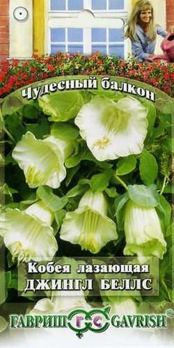 Красивейшая лиана с интенсивным ростом, достигает высоты 3 м. Ее огромные колокольчатые молочно-белые цветки достигают 8 см в диаметре! Цветение начинается в июле и продолжается до заморозков. Теплолюбива, предпочитает солнечные, хорошо удобренные участки. Выращивается рассадным способом. Посев проводят в конце февраля-марте. Всходы появляются через 10-15 дней после посева. Сеянцы пикируют по одному в горшок в стадии первого настоящего листа. Для опоры ставят колышки. Растения высаживают в высокие и большие вазоны и устанавливают прочную опору, по которой растение будет подниматься вверх. Кобея отзывчива на полив и внесение удобрений. Однако, их избыточное количество снижает интенсивность цветения.
