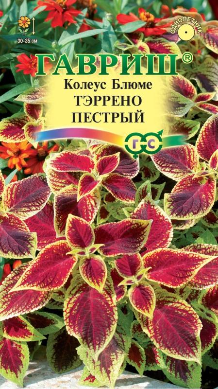 Колеусы «Тэррено» это компактные хорошо облиственные растения высотой 30-35 см с небольшими бархатистыми листьями ярких контрастных оттенков. Серия подходит для профессионального и любительского озеленения, рекомендуется для оформления бордюров, посадки массивами в группе с другими низкорослыми однолетниками. Культура предпочитает солнечные или слегка притененные места с богатой, легкой, кисловатой почвой. В феврале семена высевают на рассаду в смесь из листовой, торфяной, дерновой земли и песка (1:1:1:1) и слегка присыпают песком. При температуре 20-22°С и постоянном увлажнении всходы появляются через 14-18 дней. Подросшие растения пикируют и прищипывают (высота сеянцев не менее 10 см) для лучшего ветвления. На постоянное место высаживают в июне. В открытом грунте колеус выращивают как однолетнее растение. Осенью кусты можно пересадить в горшочки и перенести в комнату.