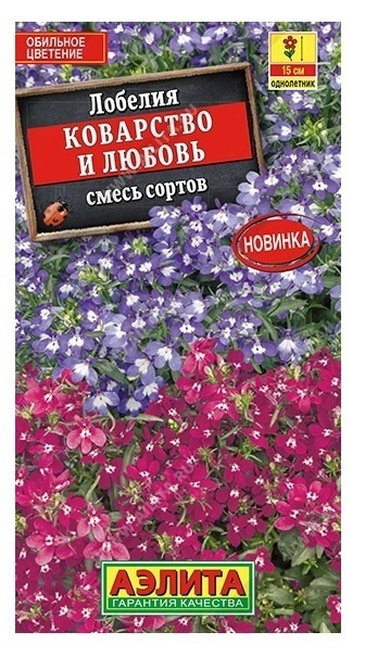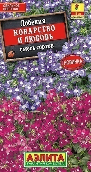 Лобелия по праву считается одним из самых популярных цветов. Ее изящные нежные цветки во время цветения полностью покрывают растение, и они становятся похожи на цветущий шар, в котором не просматривается листва. Растения формируют низкорослый крепкий кустик, высотой всего 10-15 см. Смесь лобелий Коварство и любовь рекомендуется для выращивания в подвесных корзинах, вазонах, в цветочных горшках и клумбах. Прекрасно смотрится в композициях с другими цветами.