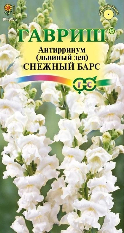 Декоративный и очень популярный в садоводстве многолетник, культивируется как однолетник. Цветение пышное и обильное с конца июня до самых поздних заморозков. Растения высотой 40-60 см. Белоснежные крупные цветки собраны в густые кистевидные соцветия, прекрасно смотрятся в групповых посадках, в цветниках, подходят для высококачественной срезки (львиный зев стоит в воде до двух недель). В уходе антирринум неприхотлив, к почвам не требователен, холодостоек, светолюбив в засушливый период нуждаются в поливе. Выращивают рассадным способом. Для получения дружных всходов семена необходимо стратифицировать при температуре +10 С. Посев проводят с начала марта до середины апреля, поверхностно (не заделывая), в ящики с влажным субстратом и накрывают стеклом для поддержания влажности почвы. Семена прорастают на свету через 8-12 дней. Рассаду высаживают во второй половине мая с расстоянием между растениями 20 см.