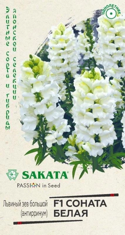 Интересные цветы добавляют уюта, прелести и моментально оживляют даже самый унылый и невзрачный участок в саду. Львиный зев — стильная культура, имеющая невероятно изысканный внешний вид, расцветку и форму. Гибрид F1 Соната белая раскрасит сочными, красками любую, даже самую скучную территорию, создавая нереальную красоту с конца июня до поздних заморозков и распространяя вокруг восхитительный аромат. На пирамидальных, хорошо ветвящихся кустиках располагаются опушенные листья ланцетовидной формы и большое количество пышных соцветий. Антирринум холодостоек, светолюбив, к почвам нетребователен, в засушливый период нуждается в поливе. Выращивают рассадным способом. Для получения дружных всходов семена необходимо стратифицировать при температуре +10оС. Посев проводят с начала марта до середины апреля, поверхностно, не заделывая, в ящики с субстратом и ставят на свет. Всходы появляются через 8-12 дней. Рассаду высаживают во второй половине мая с расстоянием между растениями 20 см.