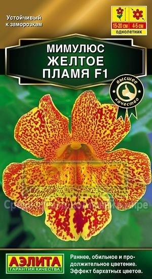 Гетерозисный гибрид мимулюса от компании Floranova (Англия). Ценится за компактность кустика, крупный размер цветка (4 см) и короткий период от посева до бутонизации (5-6 недель). Растения высотой 20-25 см обильно цветут двумя волнами, первая волна – в июне-июле. В середине лета кусты обрезают. Отрастающие молодые побеги обеспечивают вторую волну цветения, обильнее и продолжительнее первой, благодаря устойчивости гибридов к заморозкам до -4°С. Мимулюсы используют для оформления затененных цветников, балконных контейнеров. Гибриды можно сохранить до следующего сезона. Для этого осенью растения пересаживают в горшки и переносят для зимовки на прохладный, светлый подоконник.