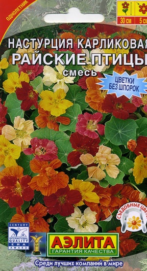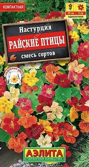 Компактная, кустовая настурция с ярким и обильным цветением. Важным достоинством смеси является то, что цветки (диаметром 4-6 см) расположены выше листвы. Кусты полушаровидной формы, высотой 25-30 см. Растения тепло- и светолюбивые, неприхотливые в уходе. Хорошо смотрятся на клумбах, в рабатках и бордюрах. Подходят для контейнеров и балконных ящиков.