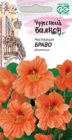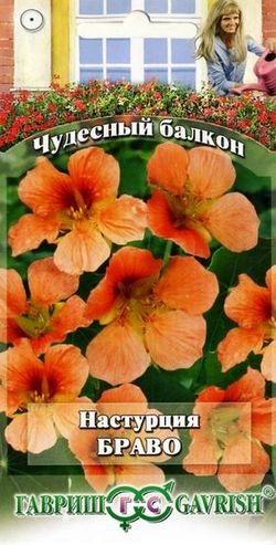 Одно из самых популярных растений для балконов различной экспозиции. Компактные настурции быстро завоевали признание. Их высаживают в подвесные корзины, вазы, контейнеры. Ценятся за легкость выращивания, оригинальную форму цветков, яркие расцветки. Образует куст высотой 25-30 см, побеги по мере разрастания становятся свисающими. Листья крупные, темно-зеленые. Цветки лососевого-оранжевого тона, с ярко-бордовыми «сигналами» в центре, диаметром 5-6 см. Цветет обильно с июня до заморозков. Теплолюбива и светолюбива. Предпочитает умеренно плодородные, влажные почвы. На питательных почвах «жирует» в ущерб цветению. Семена высевают в апреле в горшки (по 2-3 в лунку). Всходы появляются через 10-14 дней. В контейнеры растения высаживают, не нарушая земляной ком в конце мая-начале июня на расстоянии не менее 20 см.