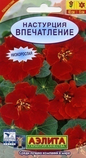 Компактный кустовой сорт, подлинный шедевр среди настурций. Запоминается сильным контрастом очень темной листвы и ослепительно ярких цветков. Формирует растения высотой до 40 см, обильно усыпанные цветками диаметром 5-7 см. Цветки со шпорцами возвышаются над листвой. Кусты отлично смотрятся на клумбах и рабатках, в садовых контейнерах и балконных ящиках.