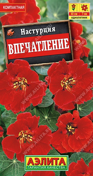 Компактный кустовой сорт, подлинный шедевр среди настурций. Запоминается сильным контрастом очень темной листвы и ослепительно ярких цветков. Формирует растения высотой до 40 см, обильно усыпанные цветками диаметром 5-7 см. Цветки со шпорцами возвышаются над листвой. Кусты отлично смотрятся на клумбах и рабатках, в садовых контейнерах и балконных ящиках.