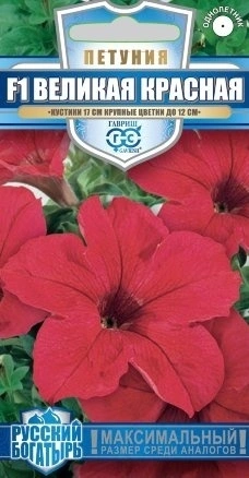 Эта восхитительная петуния будет главной героиней любой ландшафтной композиции, украшая пространство своими крупными красными цветками. Прекрасно смотрится как одиночное растение, а в группе, образует яркое, нарядное пятно. Отлично подходит для балконных ящиков, ваз и подвесных кашпо. Раннецветущая. Компактная. Диаметр цветков 10-12 см, распускаются в большом количестве. Выращивают рассадным способом. Посев проводят с января по апрель, поверхностно, под стекло (после появления всходов стекло убирают). В зимние месяцы январь-февраль досветка обязательна. При ранних сроках посева цветение начинается в мае, что очень удобно для выращивания растений на балконе, закрытых террасах, патио. Без дополнительного освещения петунию высевают не раньше марта. Всходы появляются через 7-12 дней. На постоянное место высаживают, когда минует опасность заморозков. Светолюбива и достаточно засухоустойчива. Предпочитает легкие, плодородные, хорошо дренированные почвы.