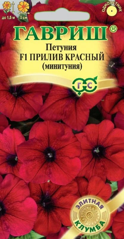 Гибриды из серии F1 «Прилив» (Tidal wave) относятся к принципиально новой, не имеющей аналогов разновидности петунии Hedgiflora. Во взрослом состоянии она превосходит все известные каскадные формы, включая «сурфинию» по многим параметрам. Гибриды обладают невероятной скоростью роста и мощью. Одно растение формирует до сотни красных, бархатистых цветков диаметром 5 см. Габитус растения зависит от плотности посадки. При высадке на расстоянии 30 см, растут, в основном, вверх, образуя живую изгородь высотой 40-50 см. Крепкие стебли позволяют поддерживать форму в течение всего сезона. Высаженные на расстоянии 60 см, разрастается как почвопокровные во всех направлениях на площади 1,5 м². Но эффектнее всего выглядят растения в подвесных корзинах и балконных ящиках, где мощные многочисленные побеги длиной до 1,5 м, свисая, образуют грандиозный цветущий водопад. Выращивают рассадным способом. Посев проводят с января по апрель, поверхностно, под стекло (после появления всходов стекло убирают).
