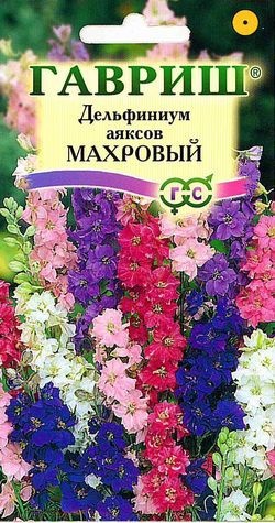 Однолетнее растение с прямым малоразветвленным стеблем высотой до 40 см. Листья сильно рассеченные на узкие доли, на коротких черешках или почти сидячие. Цветки крупные, до 5 см в диаметре, махровые. Окраска цветков белая, розовая, красная, голубая, синяя, сиреневая, фиолетовая. Цветение продолжительное, с июня до осени. Дельфиниум аяксовый — одно из самых легких в выращивании растений, которое сеют непосредственно на постоянное место, так как всходы не выносят пересадки. Посев в сентябре, октябре, марте и апреле. При более поздних весенних сроках посева растения не успевает зацвести. Ежегодно легко возобновляется самосевом. Растения, посеянные осенью, развиваются в крепкие компактные кустики. Они цветут в следующем сезоне с июня по август. При весеннем посеве период цветения начинается позже и длится с июля по сентябрь.