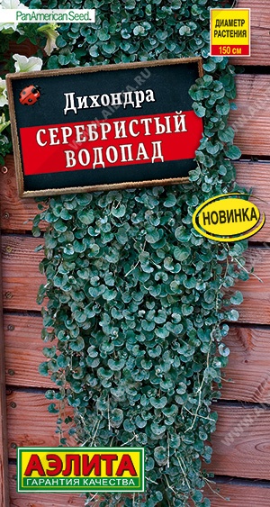 Серебристый водопад от американской компании PanAmerican Seed, который будет отличным дополнением любых цветочных композиций и подвесных кашпо. Дихондра Серебристый водопад (Silver Falls) ценится за побеги, которые достигают 1,5 м, и хорошо имитируют водопад, ручей. Она хорошо растет на каменистых поверхностях. Используется в качестве почвопокровного растения, для заполнения пространства между другими растениями. Сорт устойчив к вытаптыванию и предпочитает солнечные участки, для сохранения красивого серебристого оттенка листьев.